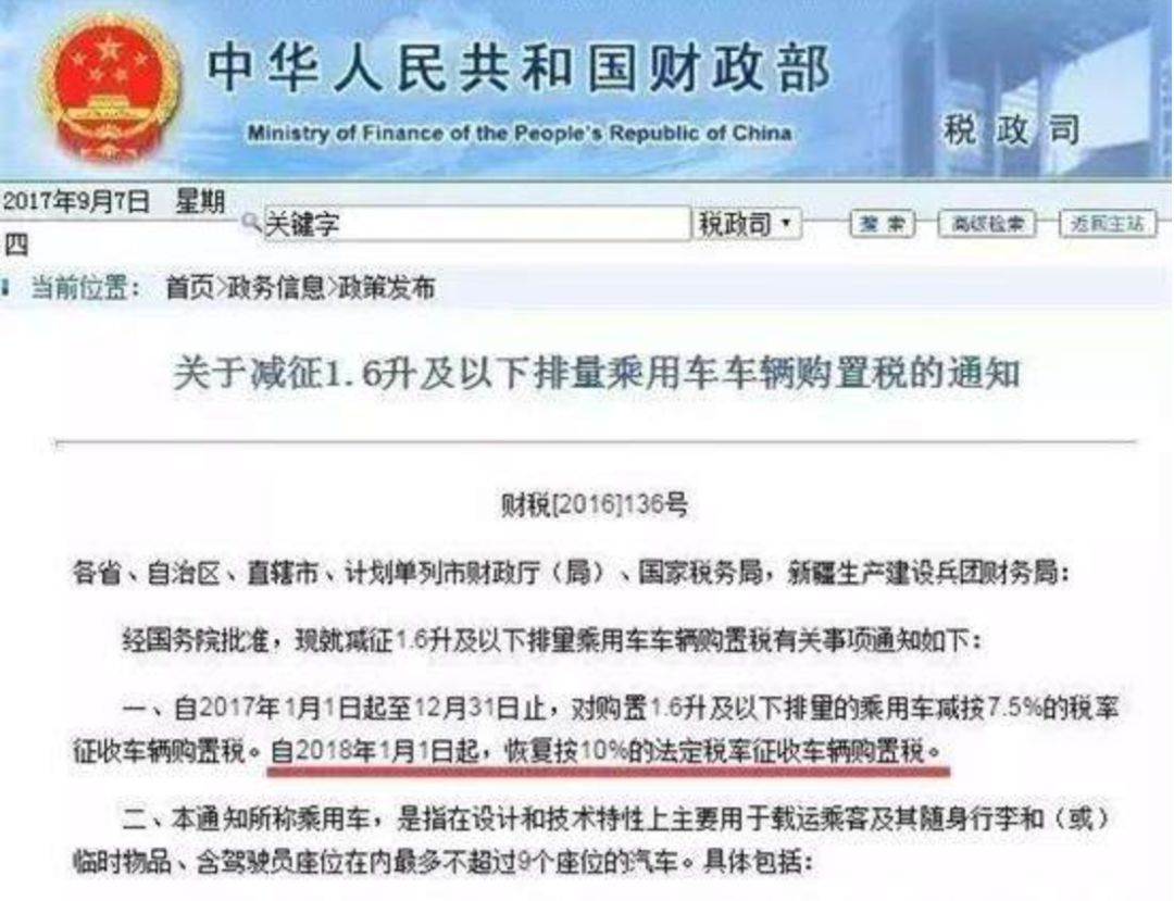 政策:根據(jù)通知要求,自2018年1月1日起,消費(fèi)者購買1.6升及以下排量的乘用車購置稅將恢復(fù)10%的稅率。在此之前,購置稅仍將維持7.5%的稅率。以購買10萬元的乘用車為例,2018年繳納的購置稅稅金為8547元,比現(xiàn)在購車將多出約2137元。